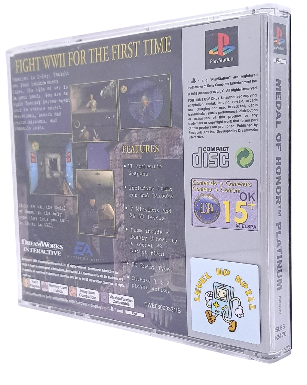 Medal of Honor (Platinum) er et av de mest innflytelsesrike krigsspillene som ble utgitt på PlayStation 1. Spillet satte en ny standard for førstepersonsshootere på konsoll, og er i dag ansett som en av de viktigste titlene innen sjangeren. Platinum-utgaven gjør dette klassikeren enda mer ettertraktet for samlere og retrospillentusiaster som ønsker å eie en historisk del av PlayStations spillbibliotek.