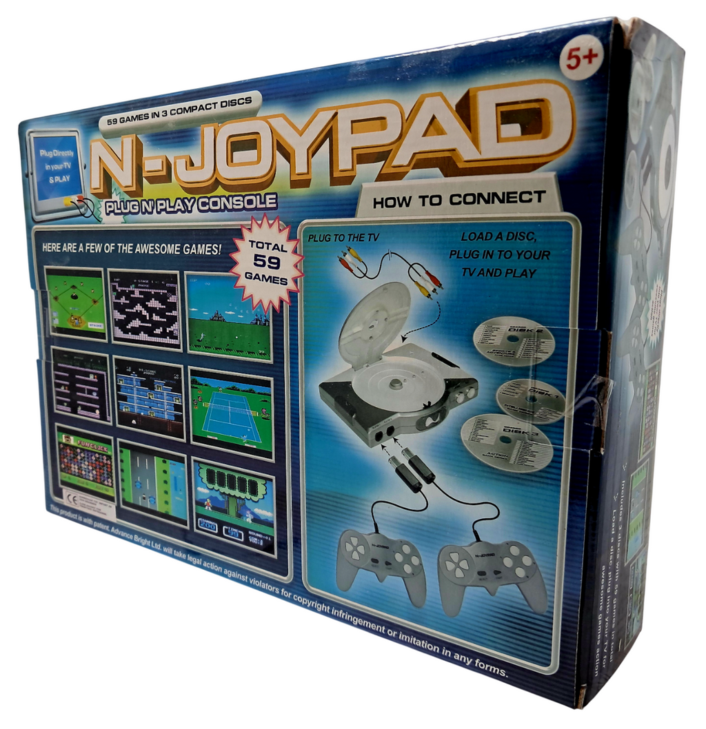 N-joypad CD3900 er en komplett retro spillkonsoll med innebygde klassiske spill, inspirert av Famicom/NES-æraen. Denne utgaven er helt ny og uåpnet, fortsatt i original emballasje slik den ble solgt på 2000-tallet. Den er perfekt for deg som vil oppleve enkelheten fra barndommens spillopplevelser – uten behov for ekstra kabler, kassetter eller installasjon.