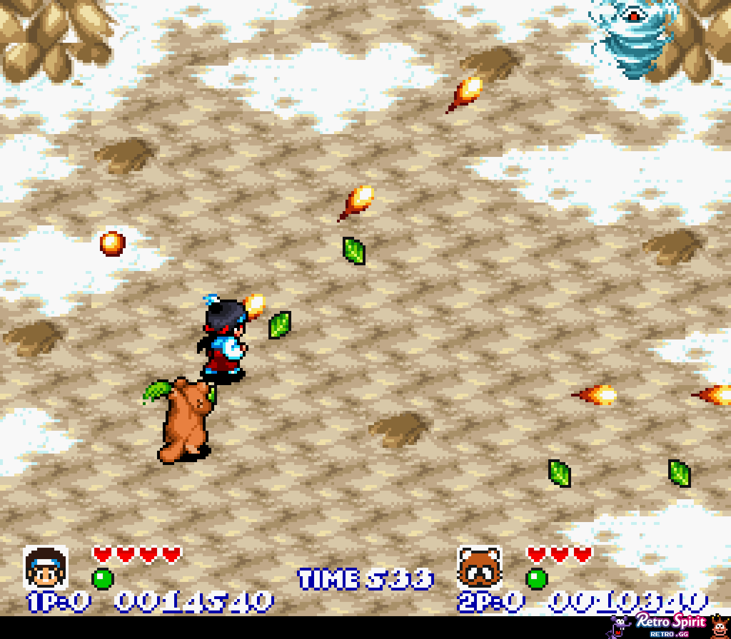 Flerspiller: En av spillets store styrker er støtte for to spillere samtidig. Samarbeid er nøkkelen for å komme videre, og co-op-modusen gjør Pocky & Rocky til et perfekt spill for felles utfordringer og høy gjenspillingsverdi.