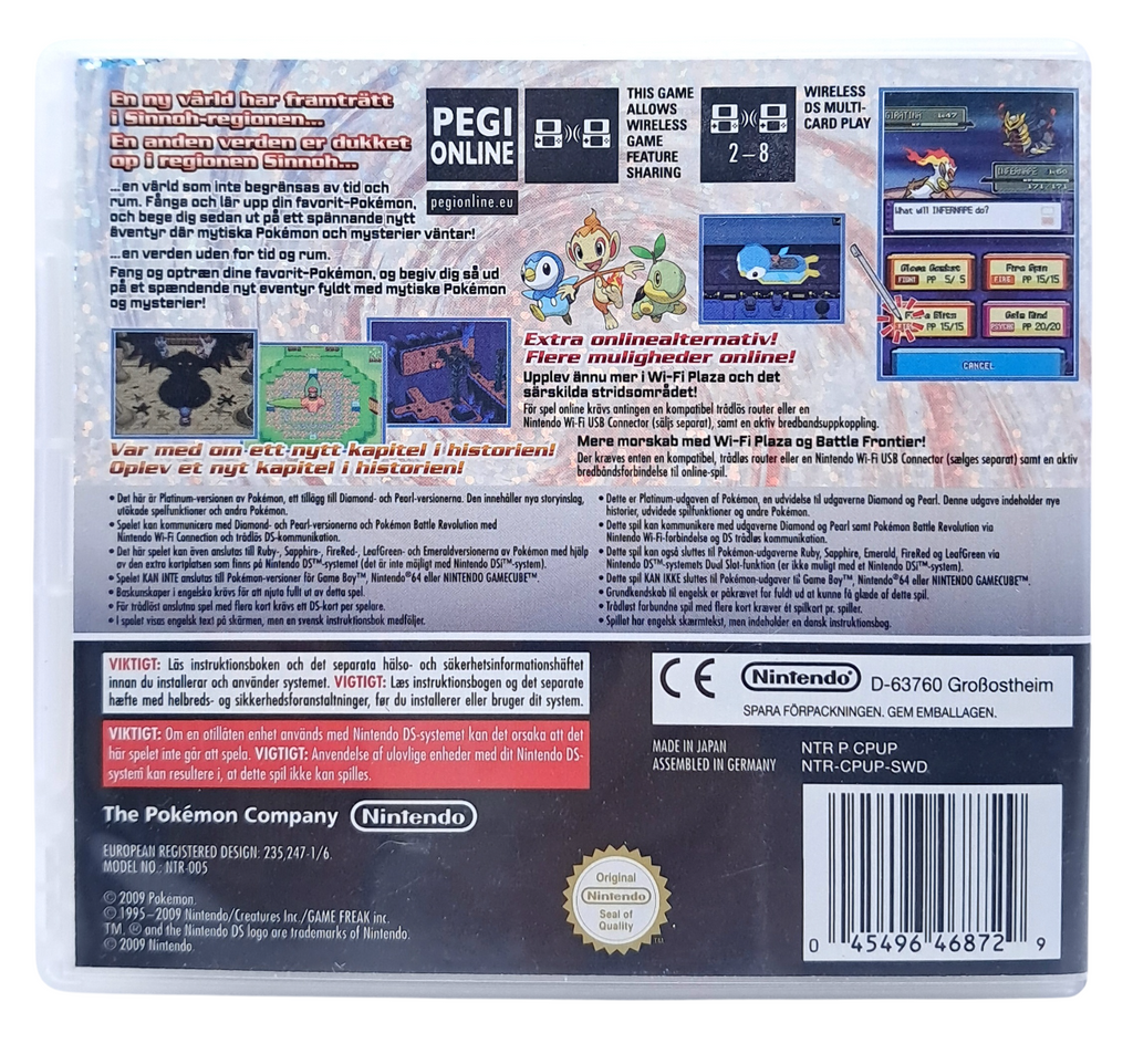 Pokémon Platinum Version er den ultimate utgaven av den fjerde generasjonen Pokémon-spill på Nintendo DS. Spillet bygger videre på Diamond og Pearl, men introduserer en rekke forbedringer, en mer balansert opplevelse og nye funksjoner som gjør reisen i Sinnoh enda mer spennende. Som trener setter du ut på eventyr for å fange, trene og kjempe med Pokémon, mens du utfordrer Gym Leaders og prøver å bli Champion.