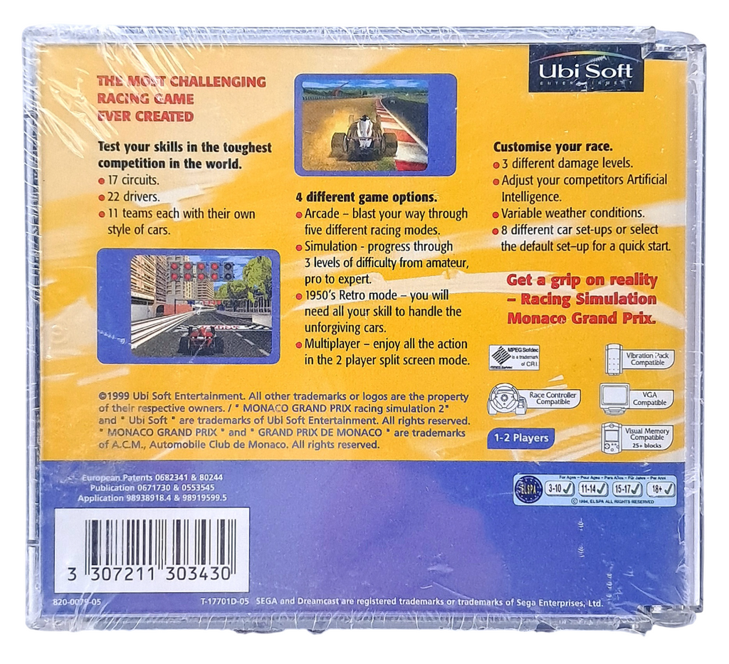 Racing Simulation: Monaco Grand Prix til Sega Dreamcast gir deg en utfordrende og realistisk racingopplevelse inspirert av det legendariske Monte Carlo-løpet. Her handler det ikke om arkadeaction, men om presisjon, banekunnskap og teknikk – alt pakket inn i en detaljert og autentisk presentasjon.