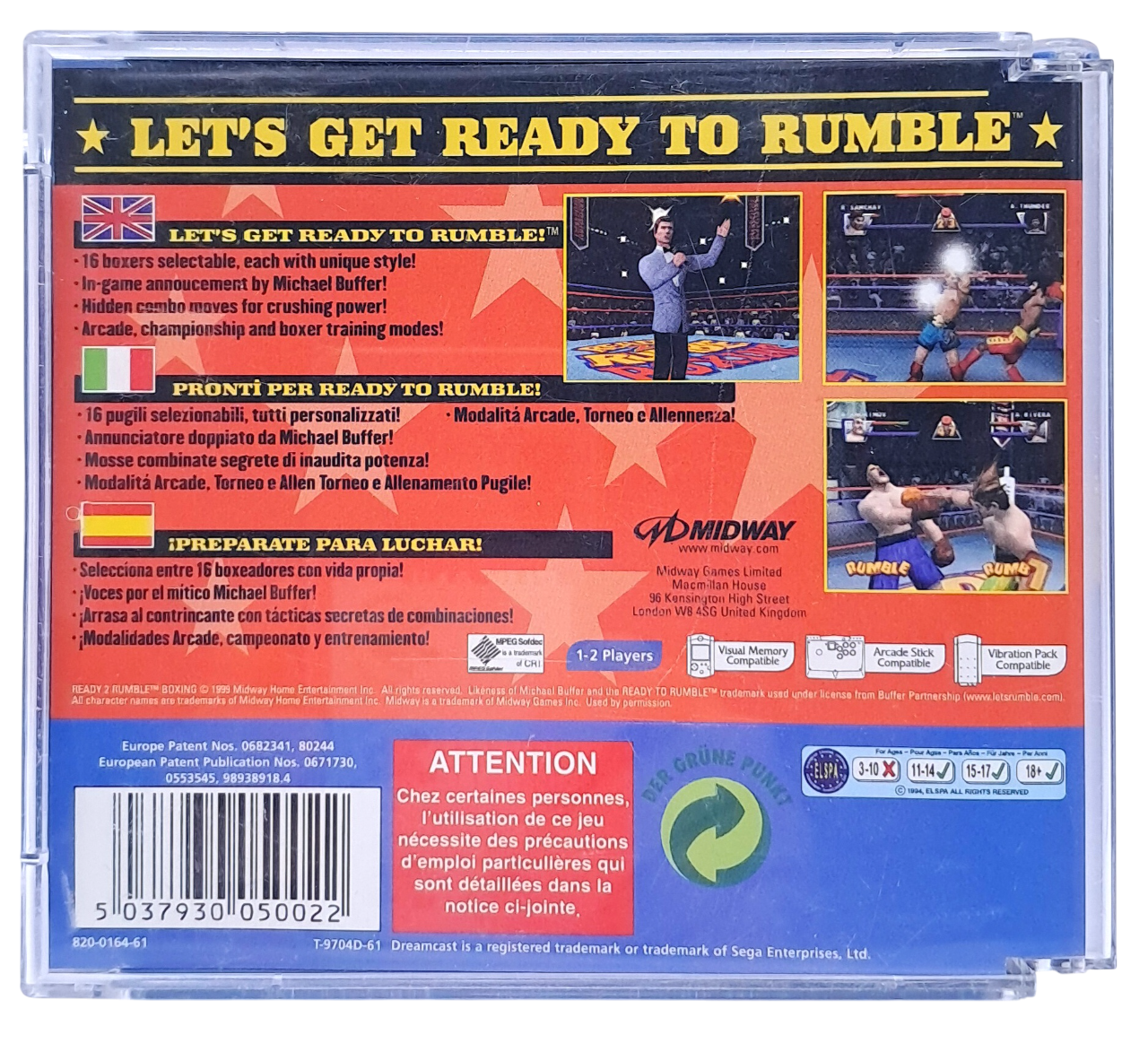 Ready 2 Rumble Boxing tok verden med storm da det ble lansert til Sega Dreamcast. Dette er ikke en realistisk boksesimulator – det er et over-the-top, fargerikt og underholdende arkadespill med masse attitude. Her handler det om raske slag, lattervekkende karakterer og høy partyfaktor – alt pakket inn i den unike stilen som gjorde Dreamcast til en kultfavoritt.
