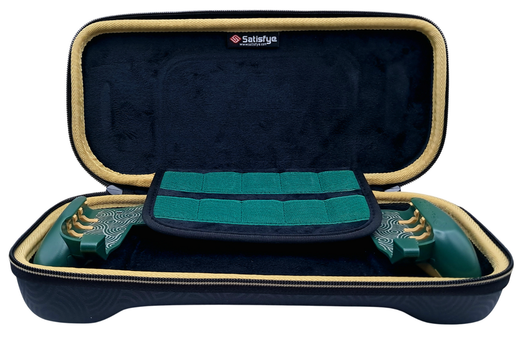Denne spesialutgaven skiller seg ut med sitt unike grønne og gullfargede design inspirert av klassiske mønstre. Den leveres med et robust premium-etui som beskytter både konsollen og grepet når du er på farten. Etuiet har plass til Switch-konsollen med ZenGrip montert, samt ekstra spillkort og tilbehør.