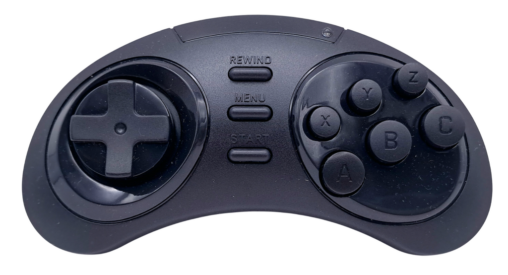 Konsollen inkluderer to kontroller formet etter originalens ikoniske 6-knapps-design. De ligger godt i hånden, er responsive og gir deg den ekte SEGA-følelsen som gjorde maskinen legendarisk. Perfekt for både solo-spilling og sofa-dueller i ekte 90-tallsstil.