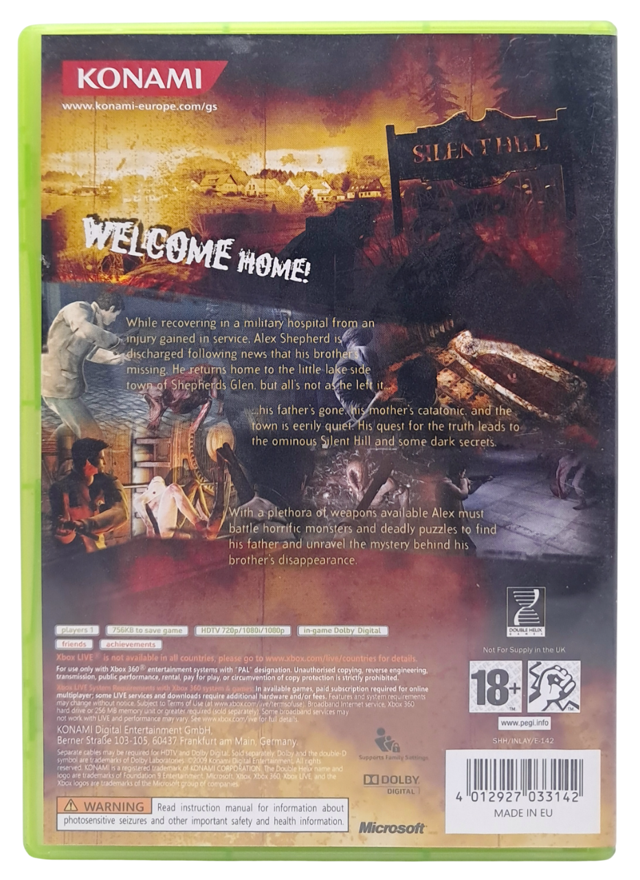 ✓ Klassisk survival horror fra den legendariske Silent Hill-serien ✓ Mørk atmosfære, gåter og intense fiendemøter ✓ Psykologisk historie med sterke temaer og symbolikk ✓ Kultstatus blant horror- og Xbox 360-samlere