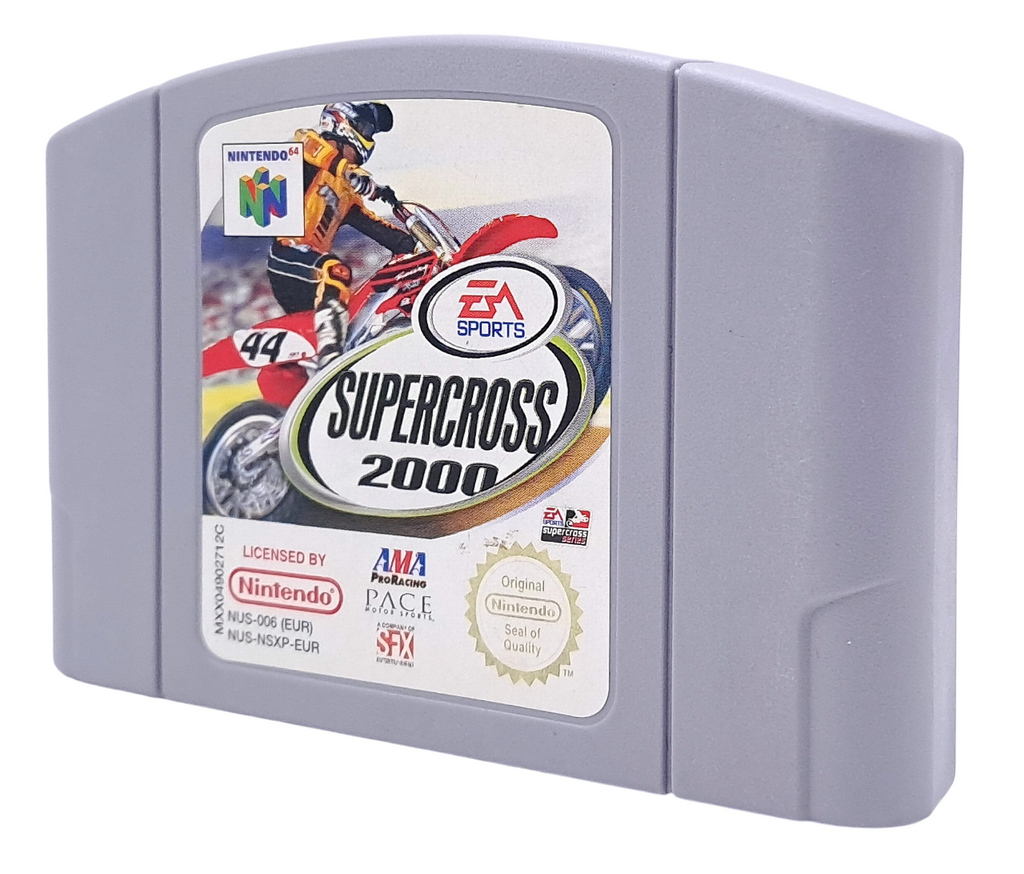 Supercross 2000 leverer fart, støv og adrenalinfylte løp på ekte 90-tallsvis. Dette N64-spillet gir deg solid arkaderacing kombinert med autentiske baner og førere fra den offisielle AMA Supercross-serien. For deg som samler på retrospill eller ønsker et sports- og racingspill som virkelig fanger følelsen av motocross, er Supercross 2000 et underholdende og lett tilgjengelig valg.